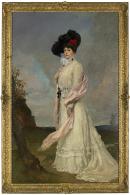 The frame is in the manner of those used by Thomas Lawrence, which would seem to be appropriate to the formality and grandeur of the portrait. The painting was shown at the Royal Academy, London, 1902. Despite having been resurfaced, the frame is a fine example of the large formal portrait frames from the early decades of the nineteenth century being reproduced at the beginning of the twentieth century. Framing styles are often revisited long after their date of introduction in order to develop our response to paintings through the association of the frame.