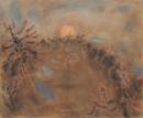 This is one of a group of landscapes painted after André Masson settled at the Villa L’Harmas near Aix-en-Provence in October 1947. During the Second World War, which Masson saw as the destruction of the Western world by materialism, he received what he called ‘Le choc de l’essentiel’ (the clash of essentials) from Chinese painting, Zen and other Eastern philosophies. Abandoning his earlier Surrealist obsessions, Masson wrote in 1953: ‘I reveal the illimitable expansion through light, universal fusion ... A delicate sensualism makes me burst the last chains that still bind me to the spirit of weightiness … The supreme lesson of Turner and the spiritual message of Zen painting have come to me.’
