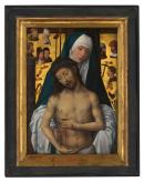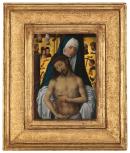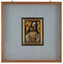 Originally from a small town near Frankfurt-am-Main, Hans Memling became a citizen of Bruges in the Burgundian Netherlands in 1465 and remained there until his death. This panel represents Christ as an image of pity. Displaying the wounds of his Passion, yet open-eyed and thus ‘alive’, Jesus is shown cradled in the arms of his grieving mother. Fervent prayer in front of harrowing images of this type was considered to have the power to hasten the soul’s passage through the pains of Purgatory.