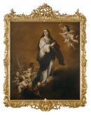 The frame surrounding Murillo’s Immaculate Conception is most likely English, made during the ownership of the painting by Sir Sampson Gideon (1745-1824). The painting is recorded in his collection in 1759.