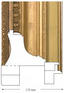 The basic construction of the frame is a wooden profile with discrete runs of composition ornament. As with many frames in this form, the working edge is formed by the addition of a wooden strip forming a shelf for a run of composition decoration, in this case shield and dart. Here, however, the back edge has been extended with an extra level of timber and in a corresponding way there is a second slip, painted black, which steps the painting back in the frame and leaves a sight edge which is articulated by shadow. The top member of the frame proper has a mitred join across the whole section, but this may be more representative of the original construction than evidence of having been cut down. It is only noted in this one section. The upper left and lower right corners are, nevertheless, sufficiently disturbed to suggest the frame has been cut down at these two joins. The extra depth at the back and the sight edge seem to confirm a major interference with the original form.