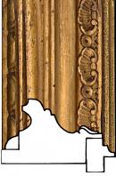 The surface is water gilded on a carved timber base with acanthus corners flanked by asymmetrical raffle leaf centres and scallops at the sight edge.