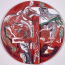 anthropomorphic biomorphic abstraction bodies (animal components) circular (shape) creatures crosses (motifs) red (colour)
