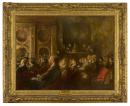 Frames like this one, derived from French Louis XIV and XV models, are common through the late nineteenth century and into the twentieth century. They remain popular to this day and reflect a taste for the seventeenth century and eighteenth century as a period of rich and expensive ornament, adding value to art by association. The gadrooning of the leading edge offers an Italian note to the design. Variations on this framing type are associated with French Impressionism, though they are a considerable distance from the styles the artists originally espoused. In the example shown here there is an empathetic relationship between the subject of the painting and the style of the frame.