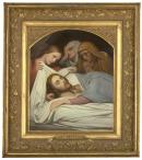 Scheffer is a difficult artist to categorise, as his style varied greatly during his career. Soon after moving from his native Holland to Paris, around 1811, he worked in a neo-classical manner, then abandoned that style when briefly influenced by the Romantic Movement. His later works are more Symbolist in nature. At this time, he was inspired by the clarity of composition, and the direct approach to narrative of Italian painting before 1500. Consequently, the characters he paints impart emotion purely through easily recognisable expressions or gestures. Scheffer’s work has been criticised as being overly sentimental, but his emotionally charged images struck a chord with the public, and he was one of the most popular artists of his day. Ary Scheffer painted a large version of Christ and the Maries (Manchester City Art Gallery) in 1845, executing this smaller variant nine years later.