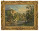 The frame is in the English rococo style, with swept and pierced edges, and is representative of the nineteenth-century manufacture of frames, which were entirely carved in timber in the eighteenth century. The frame is very close in form to the one illustrated in Mitchell and Roberts, A History of European Picture Frames, p. 64, illustration 46b, giving some credibility to the source of the style. In the manner of the frame it emulates it does not have a slip.1 A very similar frame to this appears on Phillip Wilson Steer's Distant view of Richmond, Yorkshire, 1903, (405-4) which suggests the maker might also be Chapman.