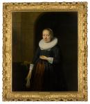 Portraits enjoyed great popularity in the Netherlands during the seventeenth century, reflecting the growing affluence and civic pride of Dutch society. Members of the extensive Dutch middle class were keen consumers of art, and their patronage sustained a large community of talented painters. This young woman’s black attire, while austere to modern eyes, was chosen for its fashionability and formality. She wears the bouwen, or close-fronted dress of an unmarried woman, a ‘millstone’ ruff, still in vogue in the 1630s, and a ‘diadem cap’ of silk or linen and pearl earrings. An expensive gold watch gleams against the piped black silk.