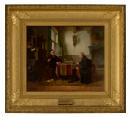This is a replica of another painting by Webb now in the Victoria and Albert Museum, London, which is signed and dated 1864. In a game of chess between a village squire and a schoolmaster, the squire appears to have won the contest. After studying at the Amsterdam and Antwerp Academies, Charles Webb settled in Dusseldorf, where he became known as a painter of genre subjects, particularly from English life and history.