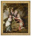 The sitters in this group portrait are the three children of Sir Walter Synnot (1742–1821) of County Armagh: Maria at the left, Marcus who is shown kneeling, and Walter at the centre. Underlying the charm of these angelic players are deeper levels of meaning. Through the ingenious motif of the birdcage, for example, The Synnot children engages the viewer in speculation on the nature of freedom and captivity, a true Enlightenment subject.