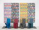 synthetic polymer paint on canvas and wood chairs, vinyl tiles on composition board