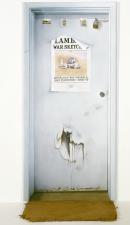 synthetic polymer paint, pencil, gelatin silver photograph, type C photograph on canvas, doormat