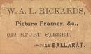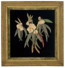 This frame is one of a pair, thought to be contemporary with the embroideries contained within. It is characteristic of a shadow-box form, used to display items of art and craft with high relief. The frame is the only example in the collection to come from a frame maker who worked in a regional Victorian city. One of the frames retains the original backing board, held in place with forged nails, which carries the label of the frame maker.