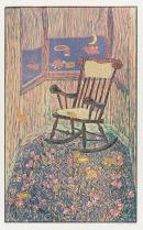colour woodcut with collage of cut colour linocut