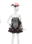 (a) label, inside bodice lining, woven in gold metallic thread on black acetate: Jenny Bannister