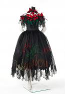 (b) Skirt of matching black organza with petal shaped hem and braided names of Australian flowers and organza leaves.