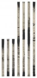 Painting (7 panels) The first panel is a single downward stroke, the second panel a single upward stroke and the third panel a combination of both. The four large remaining panels show variations of these three basic gestures.