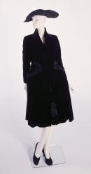 (b) label, inside centre back at lower skirt, woven in green on white acetate: Hartnell. / LONDON PARIS