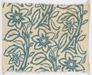 Aqua floral pattern representing passion flower vines on a plain ground.