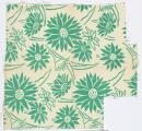 Cream ground. One colour screenprint consisting of mint green print of stylized flower buds and leaves.