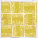 Single colour screenprint consisting of lime green print of repeating textured square on cream ground.