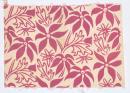 Single colour screenprint consisting of pink flannel flower motifs, leaves and buds on white ground.