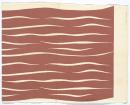 Cream ground, one colour screenprint consisting of red/brown print enclosing negative wavy stripes.