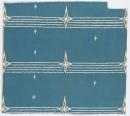 Single coloured screenprint. Cream ground, consisting of blue print with negative stars and wavy stripes arranged in horizontal bands.