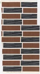 Cream ground, two colour screenprint consisting of alternate brown and black blocks. The black blocks contain negative stripes. Repeated in horizontal rows.