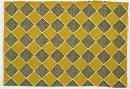 Screenprinted textile. Mustard and olive green diamond repeat pattern.