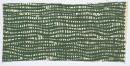 Single colour screenprint consisting of dark green print of thin vertical stripes and thick horizontal wavy lines. Cream ground.