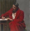 coats (garments) men (male humans) red (colour) three-quarter-length figures writing (processes)