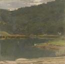 boats bodies of water (natural) bush (wilderness) mountain landscapes (visual works) mountains rivers