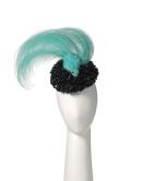 coated straw, egret feathers, glass, cotton, viscose, elastic