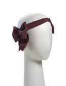 White pique hat, trimmed with Dubonnet maroon coloured grosgrain ribbon trim with matching bow on each side of hat elastic head support.
