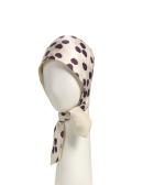 White and purple spotted foulard silk helmet with ties at the back.
