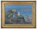 The frame is an almost exact copy of one of the frames designed by James Abott McNeill Whistler.1 Characteristically for a Chapman frame, it is well built. Though this frame appears in the early twentieth century, the Whistler prototype comes from the early 1880s, reminding us of the popularity of the ‘Whistlerian’ profiles. They had a revival in Melbourne in the 1940s for the reframing of nineteenth-century Australian paintings, replacing individual and, curiously, sometimes similarly aesthetically restrained frames. In this example it is tempting to see a conscious decision by Conder to use a definitive Aesthetic Movement framing style.2