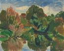 inscribed in black fibre-tipped pen on reverse u.l.: 'THE RIVER' (ALPHINGTON) / 1947 / Lina Bryans
