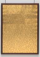 oil, gold leaf on canvas, wood frame. plastic coated wire