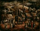chimneys (architectural elements) houses human figures (visual works) mountains pitched roofs Victoria (state) villages Walhalla (inhabited place)