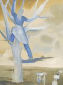 inscribed in pencil on reverse c.: BLUE (GIANT WOMAN AND MINOR PROTEST) / OIL ON MOUNTED CANVASBOARD / 1994 / GREGORY PRYOR