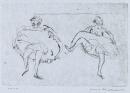 etching and drypoint with plate-tone on blue paper