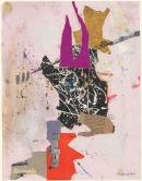 collage of cut and torn coloured and printed papers, brush and ink, synthetic polymer paint and gouache