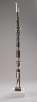 wood (dedi, Canarium australianum), earth pigments, hand-spun string, feathers (butju), human hair