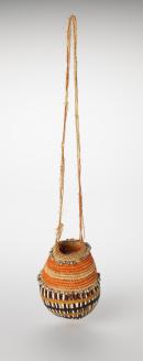 synthetic polymer paint on galuka (coconut), gunga (pandanus), natural dyes, ludhaludha (shells)