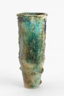 A huge vessel reminiscent of the crucibles used in foundries to hold molten metal. The exterior of the pot is marked with all signs of its making and covered with an almost repulsive high gloss glaze. The nightmarish interior is dark and full of vicious spikes. Whatever the suburban ritual it is intended for it is for a dark purpose.