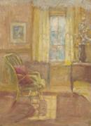 brush strokes chairs (furniture forms) daylight draperies (curtains) flower vases picture frames sitting rooms windows