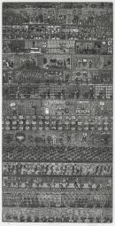 Similar in format to a cartoon strip, depicting scenes from contemporary Australian urban life, from the more intimate moments at home to the public aspects of work and leisure