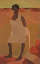 inscribed in pen and ink on paper label on reverse u.c.: 'Woman With Kangaroo" / Sam Fullbrook