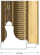 The fluting of the inner scotia is very regular and has developed small cracks, which suggests it is cast or moulded, rather than carved in the timber. The moulded torus of imbricated laurel leaves is not centred, the leaves all point the one way, suggesting the frame is made from pre-formed sections cut to length. Bands and acanthus leaves cover the mitred corners. The slip is water gilded, the taenia is burnished. The solid wooden section, which forms the profile, is unusual. It is more commonly made up from a number of pieces of wood, joined to build the bulk from which the frame section is shaped.