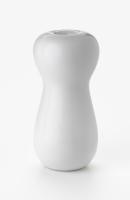 A top-heavy 'gourd' shape with a clear white glaze.